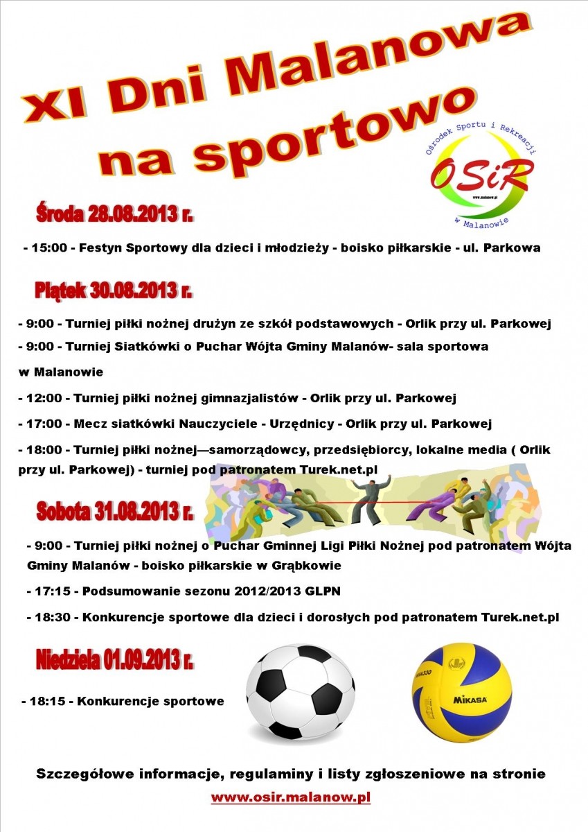 4 września, 2013 Plakat - Dni Malanowa na sportowo Pozostałe aktualności 11 września, 2013 Galeria zdjęć - XI Dni Malanowa 2013 10 września, 2013 Media o nas 8 września, 2013 Sportowo na Dniach Malanowa i Dożynkach 7 września, 2013 Dożynki Powiatowo-Gminno-Parafialne - Malanów 2013 6 września, 2013 Relacja z Dni Malanowa - Gazeta Malanowska 22 sierpnia, 2013 Plakat